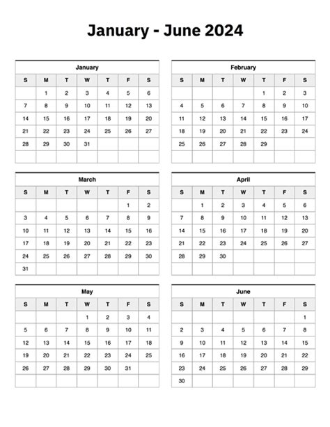 Web you can find here calendar templates for january to june 2024 calendar printed on one page with space for notes.